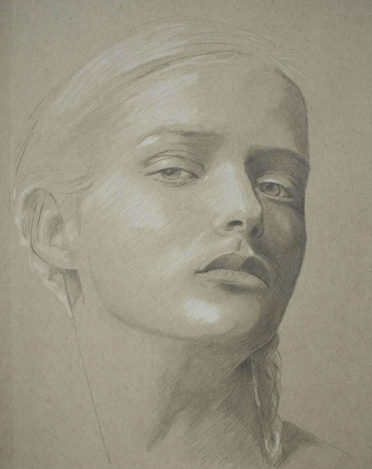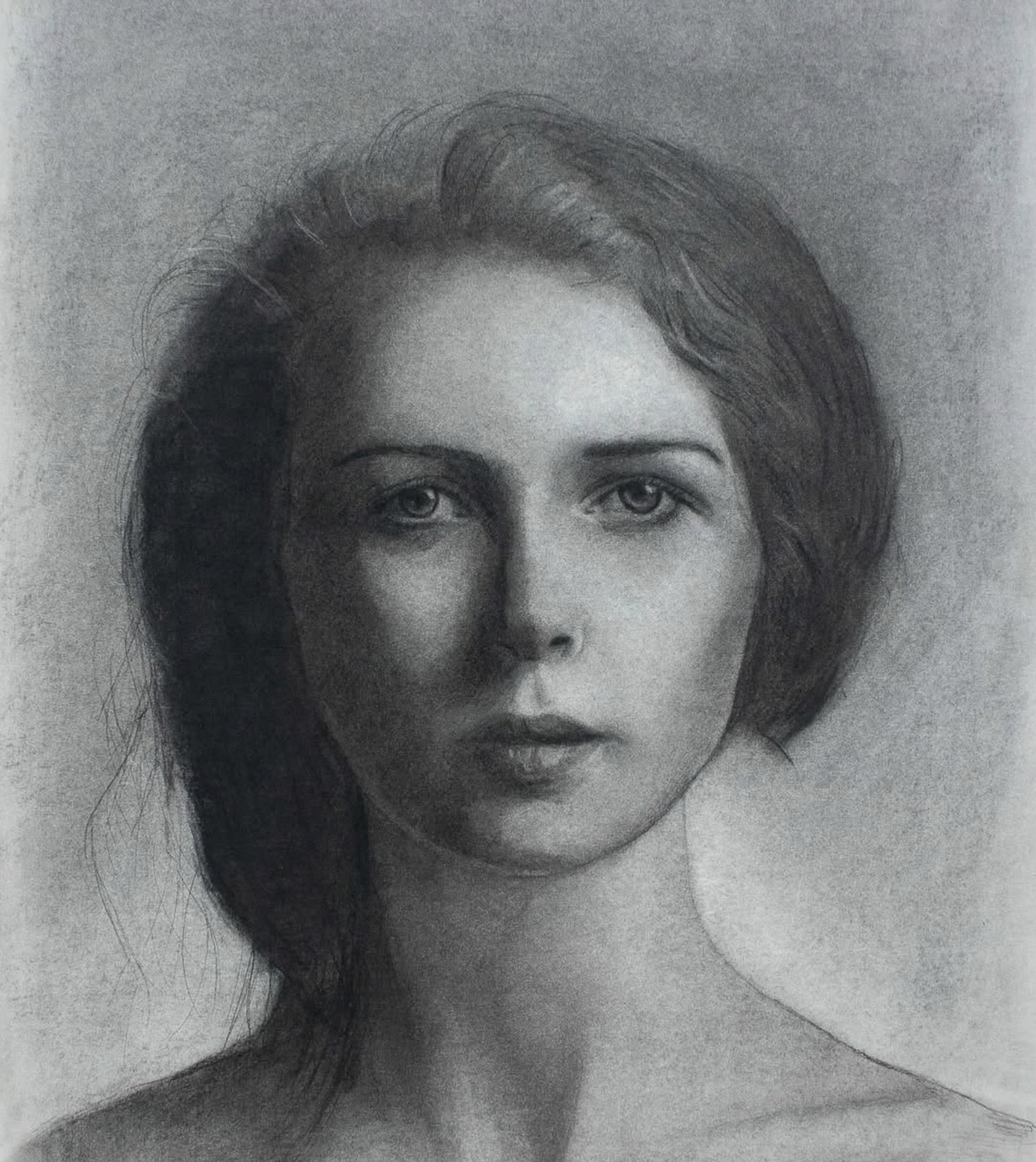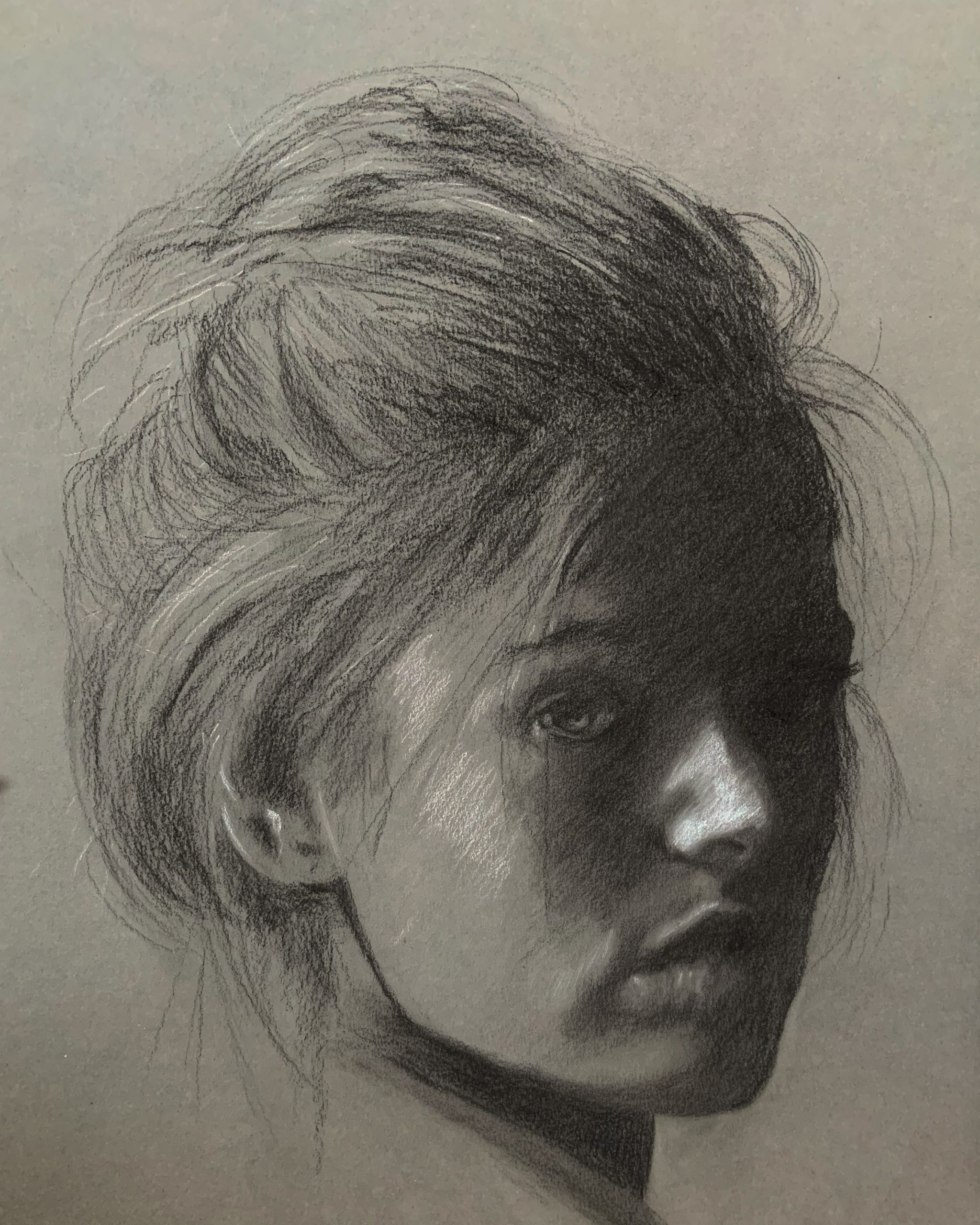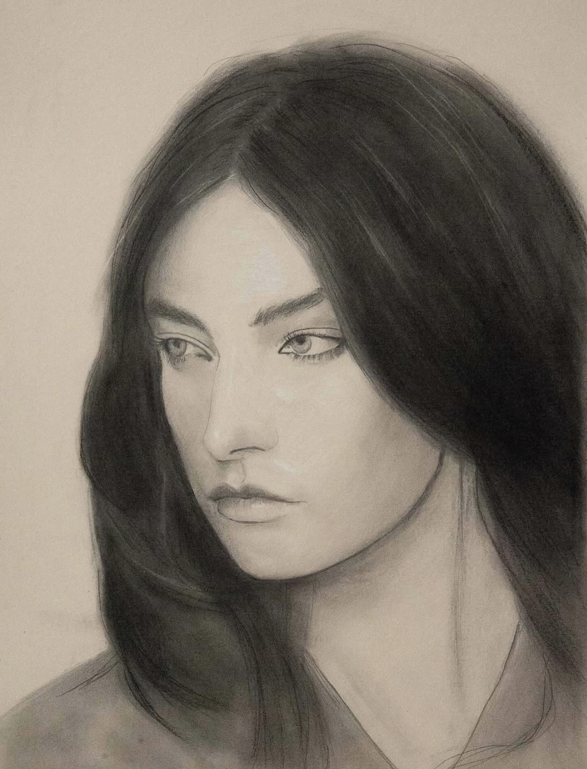 Kohlezeichnung auf Papier. Charcoal on toned paper