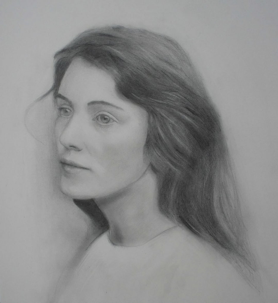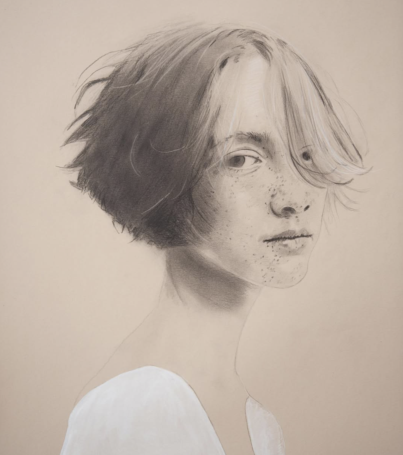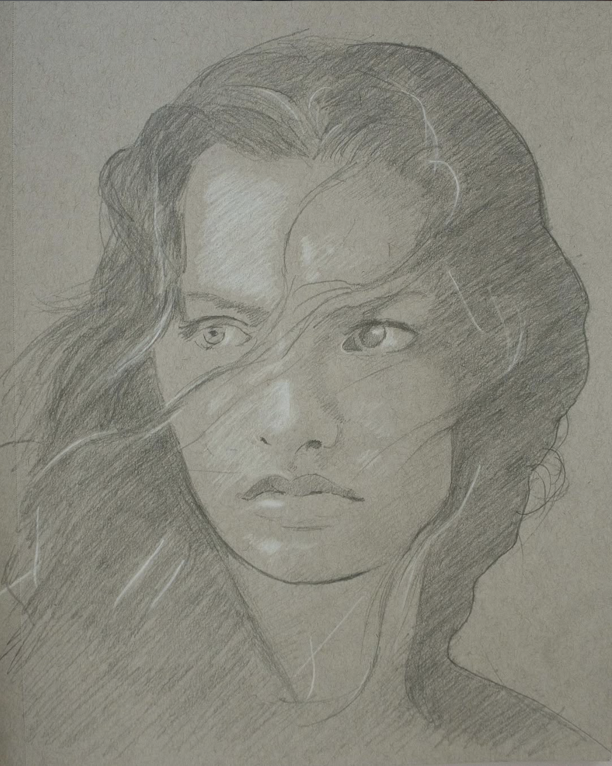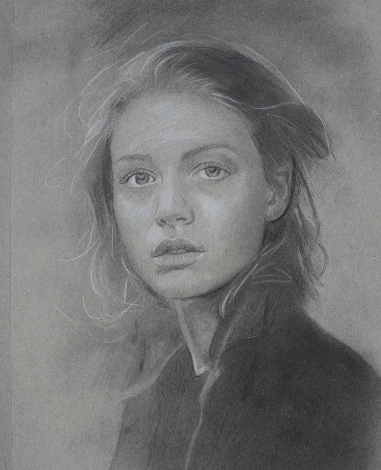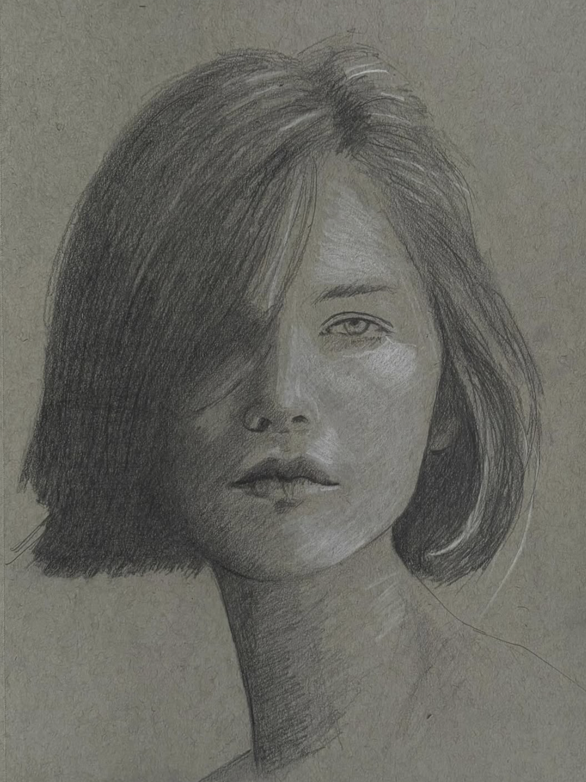 Kohlezeichnung auf Papier. Charcoal on toned paper