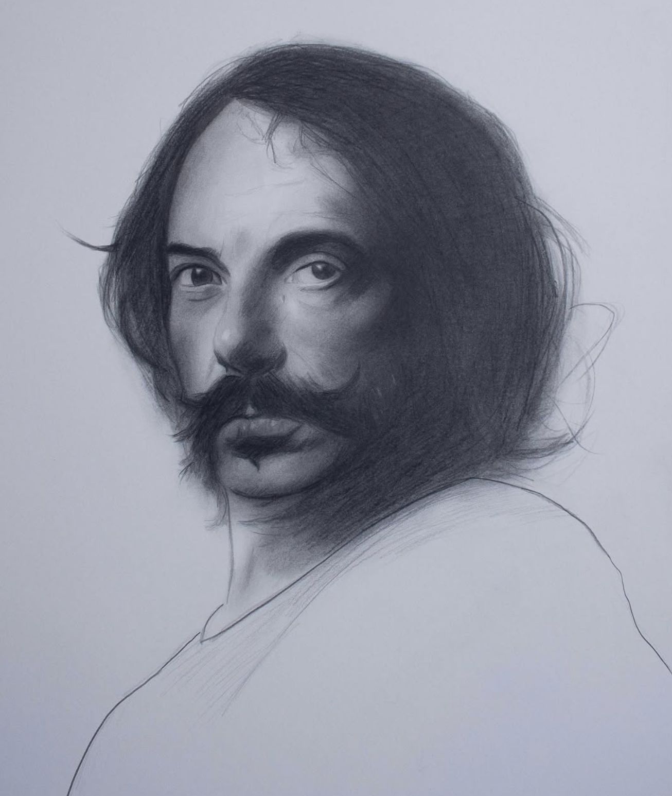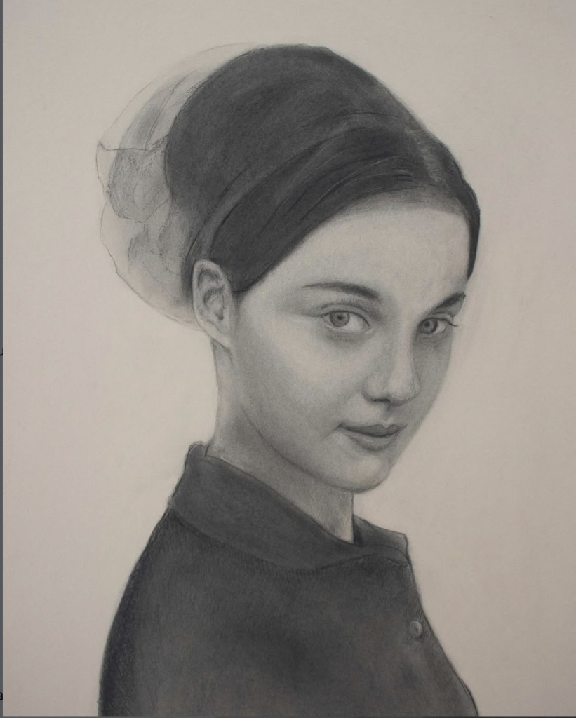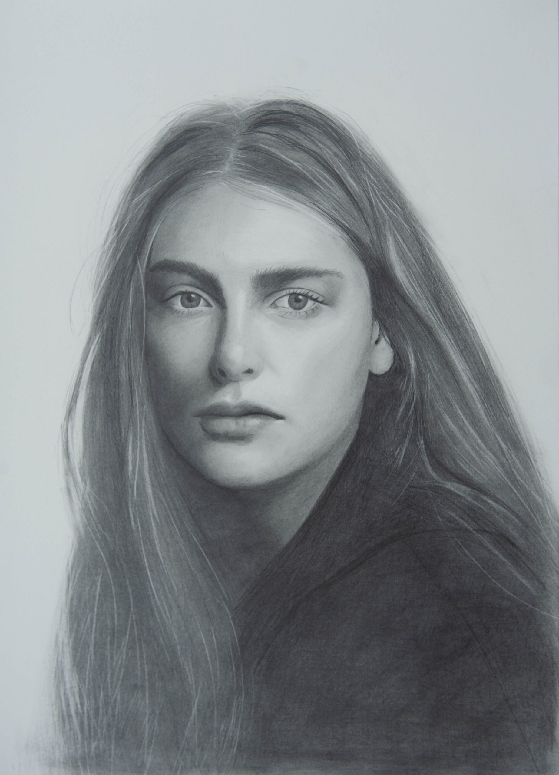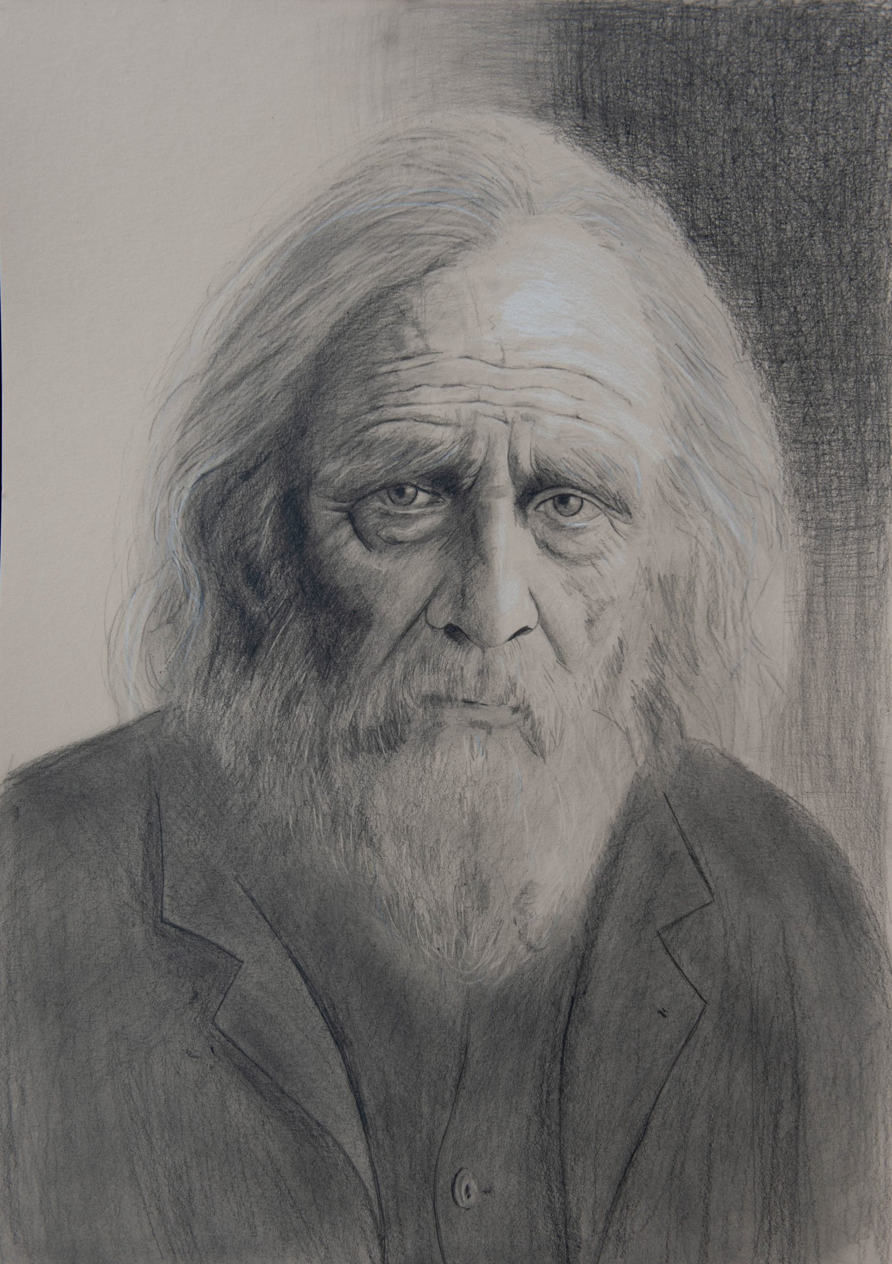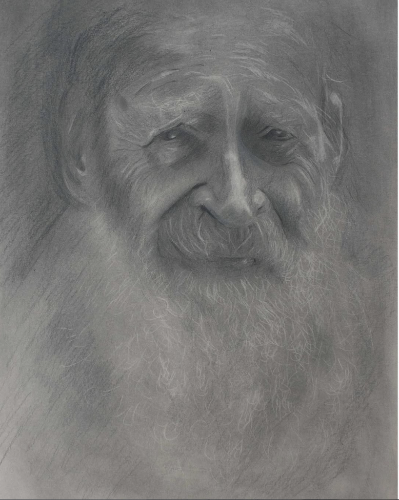 Kohlezeichnung auf Papier. Charcoal on toned paper