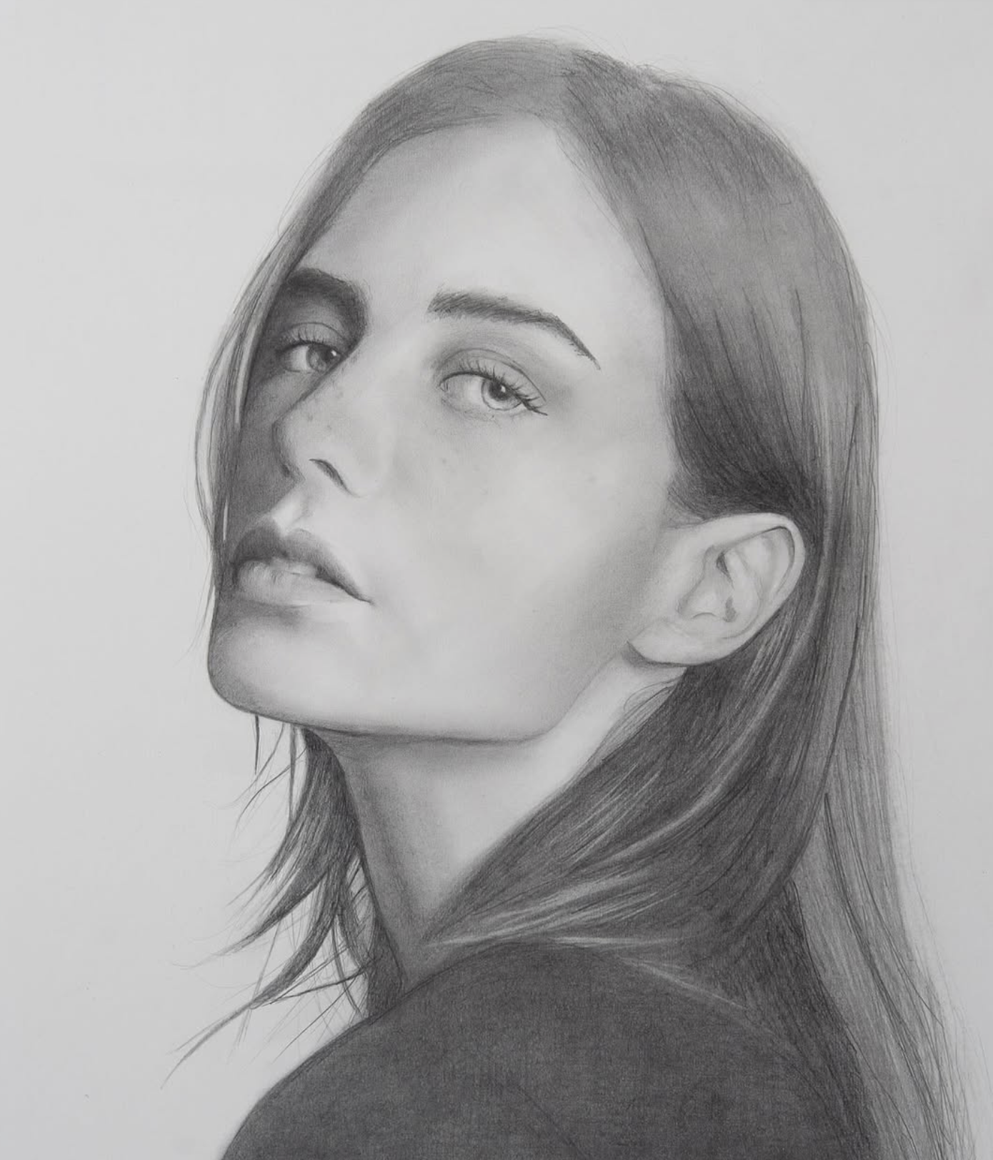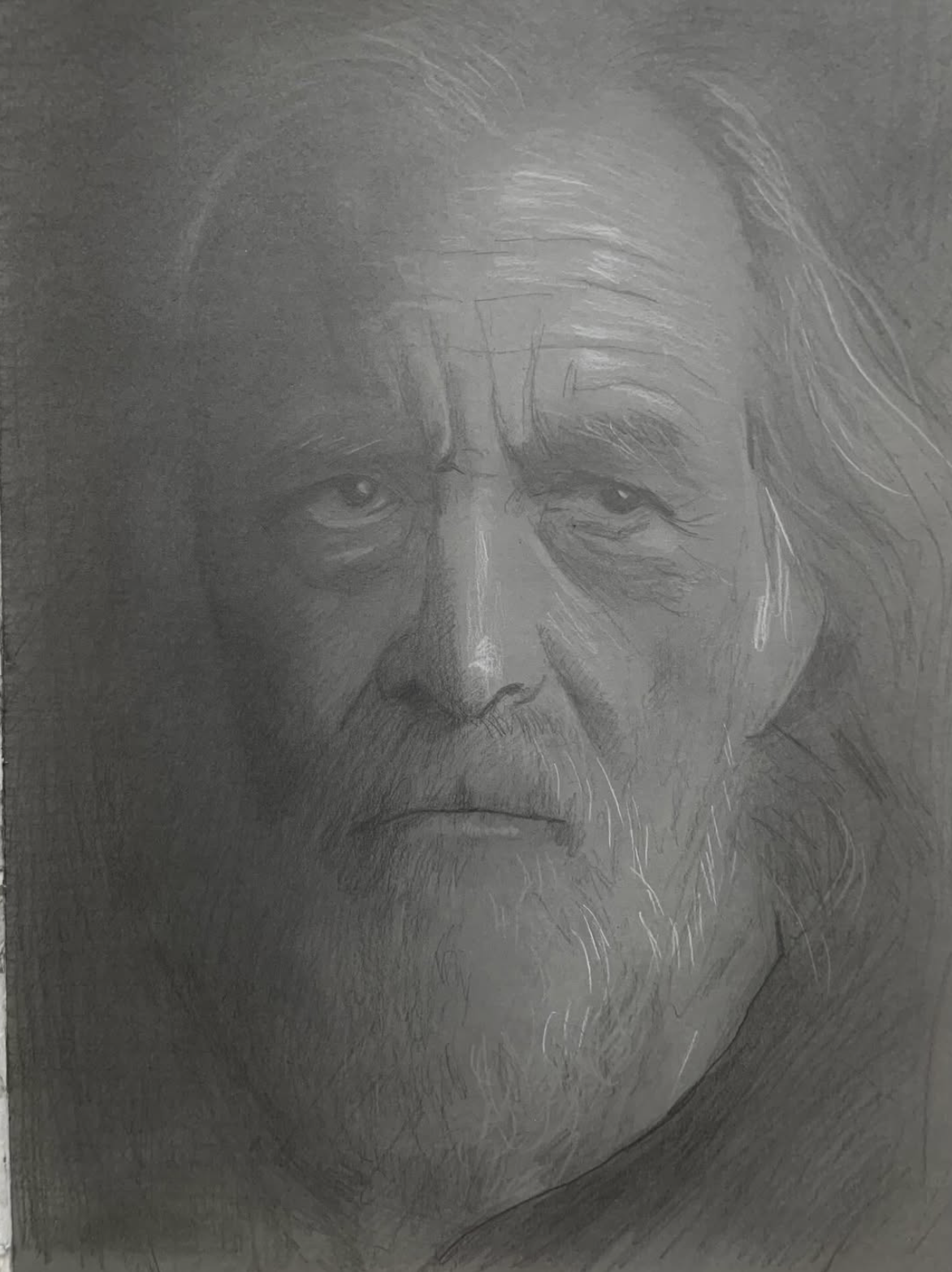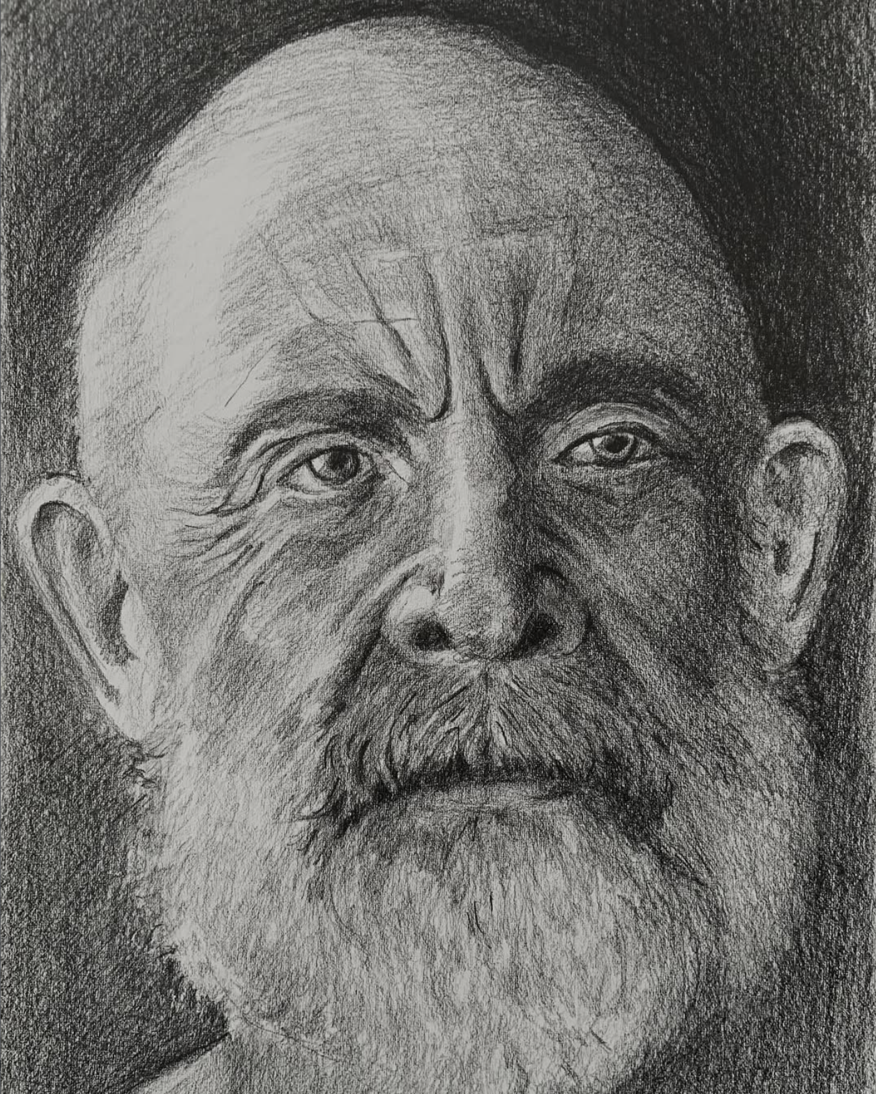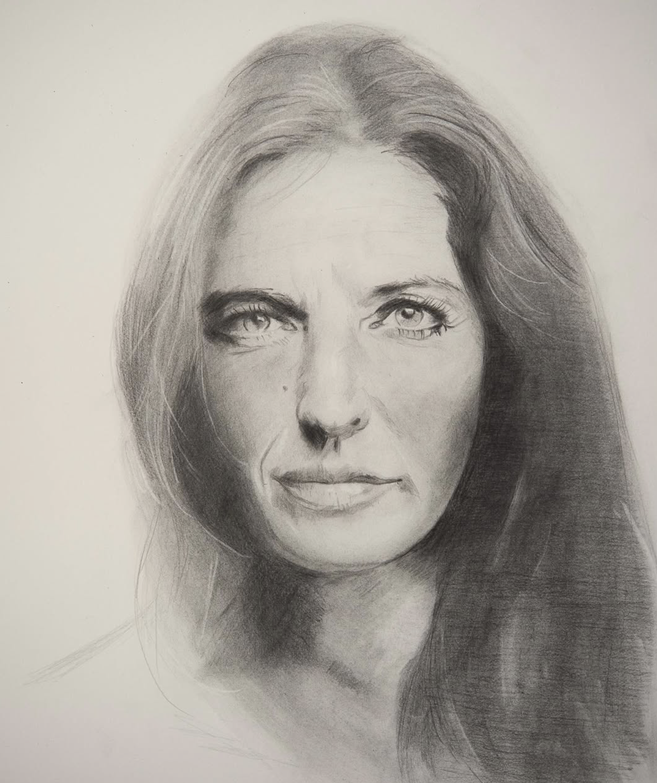 Kohlezeichnung auf Papier. Charcoal on toned paper